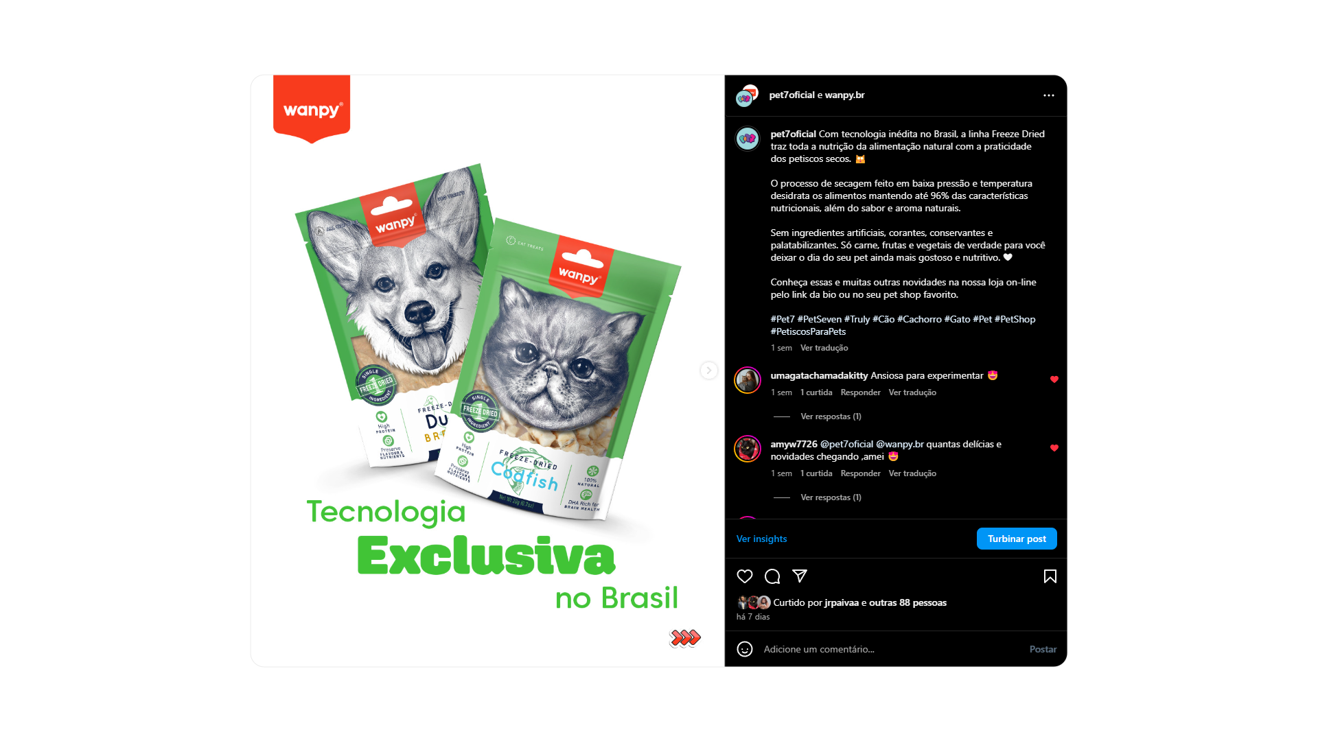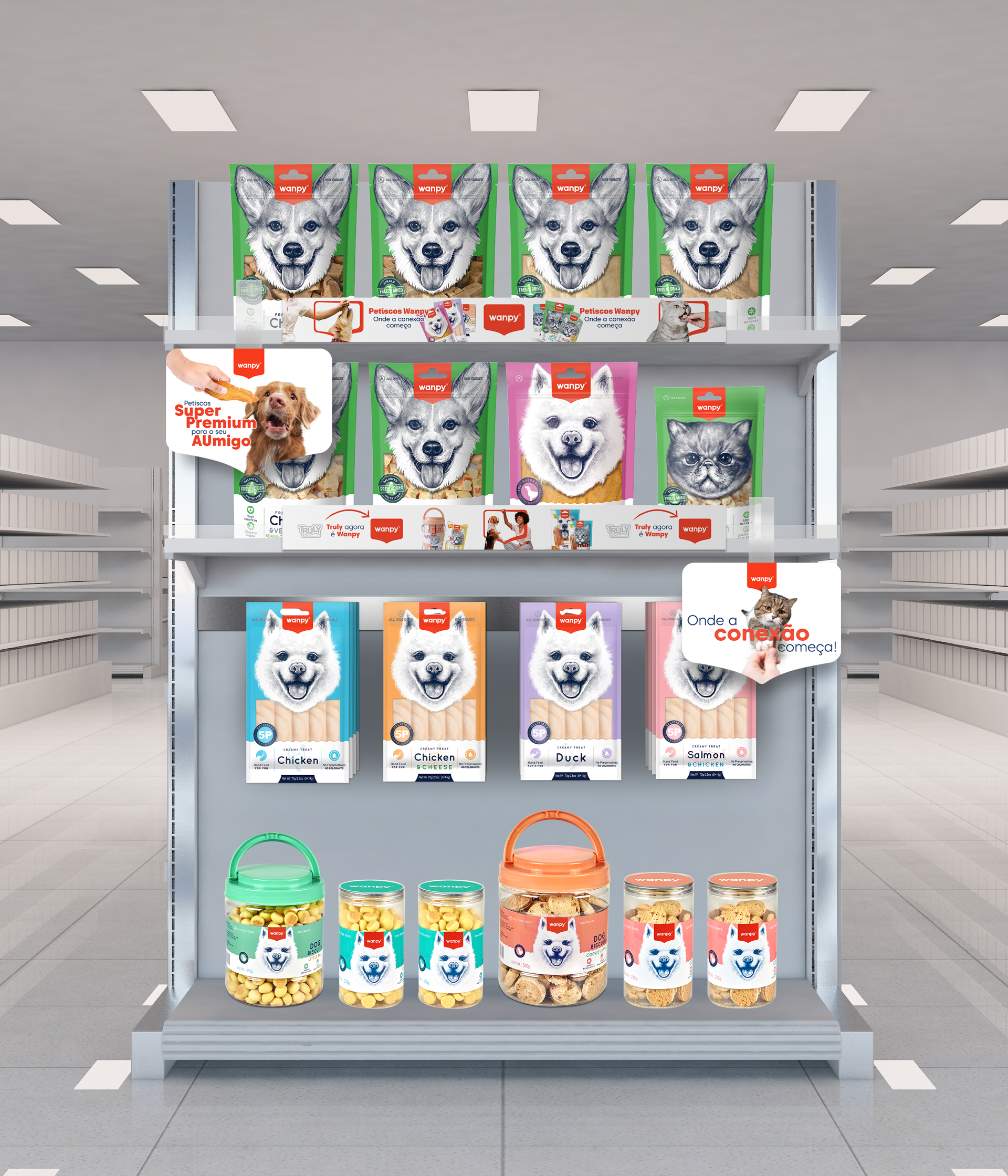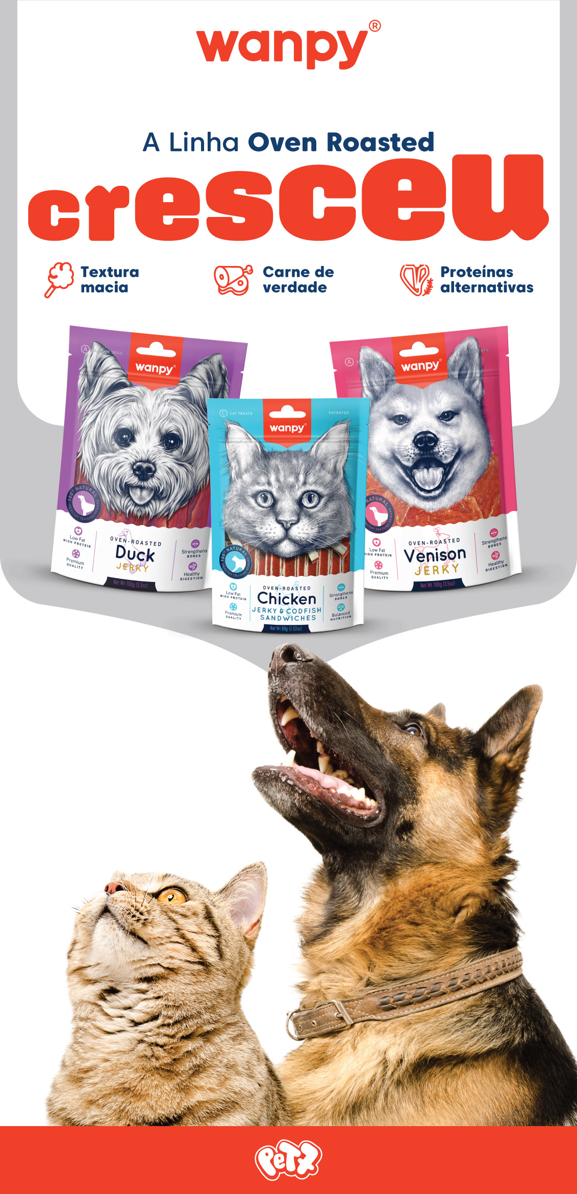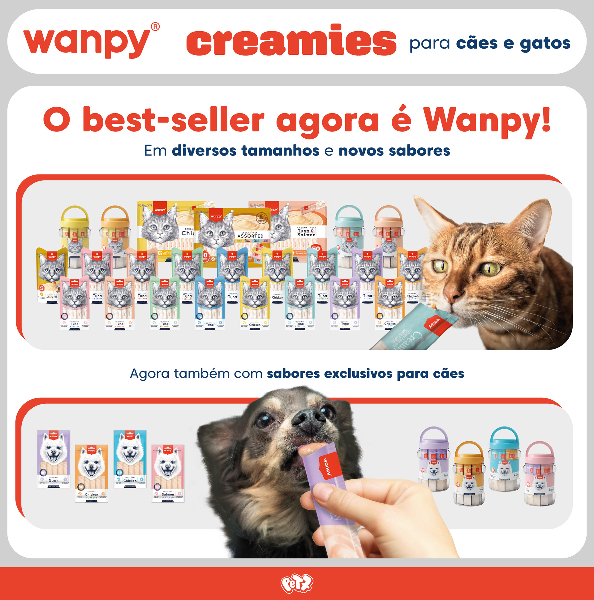 Desta forma torna o petisco Wanpy não só uma forma de recompensa, mas também uma maneira divertida de o tutor se conectar sempre com seu pet.